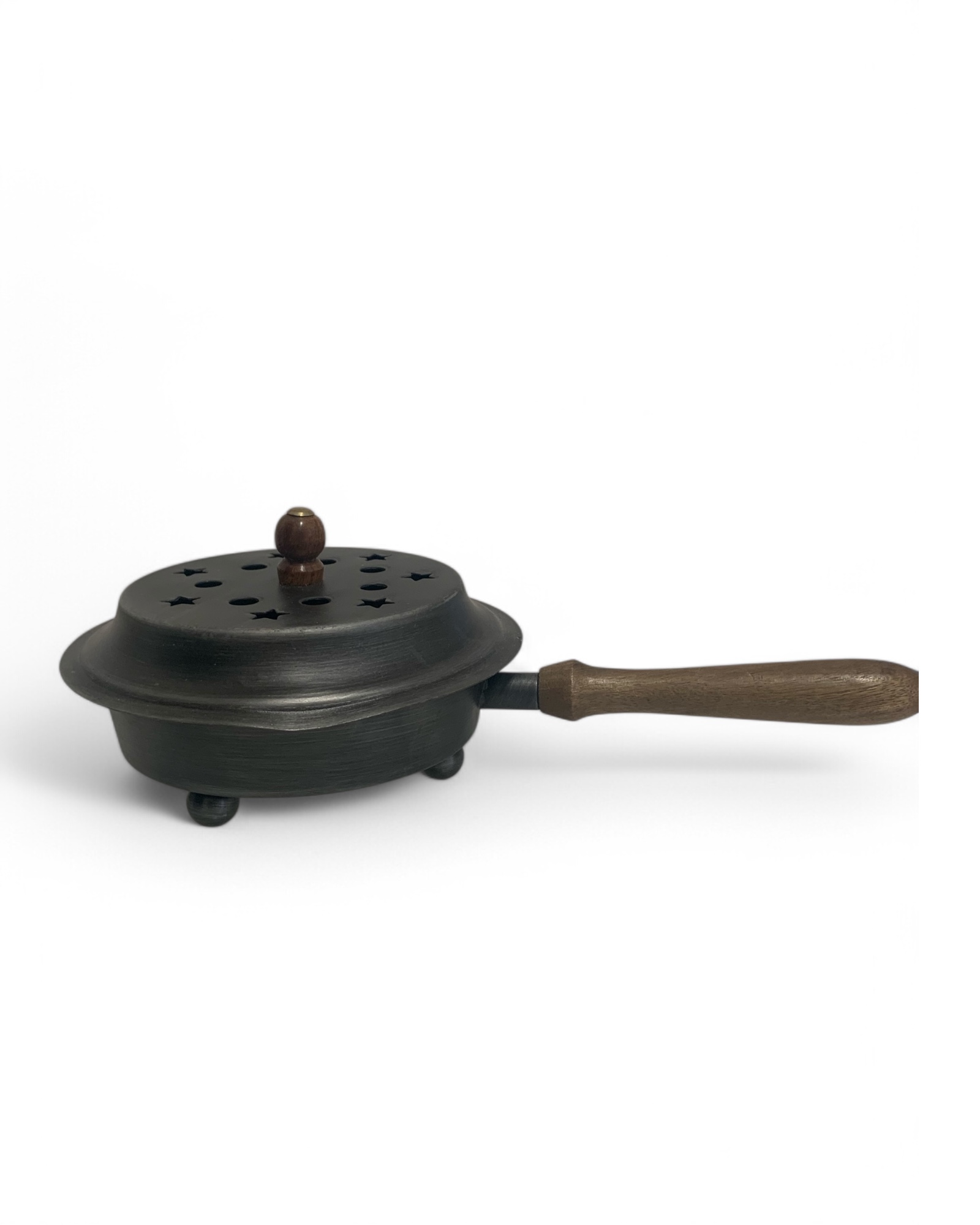Vollfunktionsfähige Räucherpfanne mit kleinem Makel. Beule durch Transportschaden auf dem Deckel.