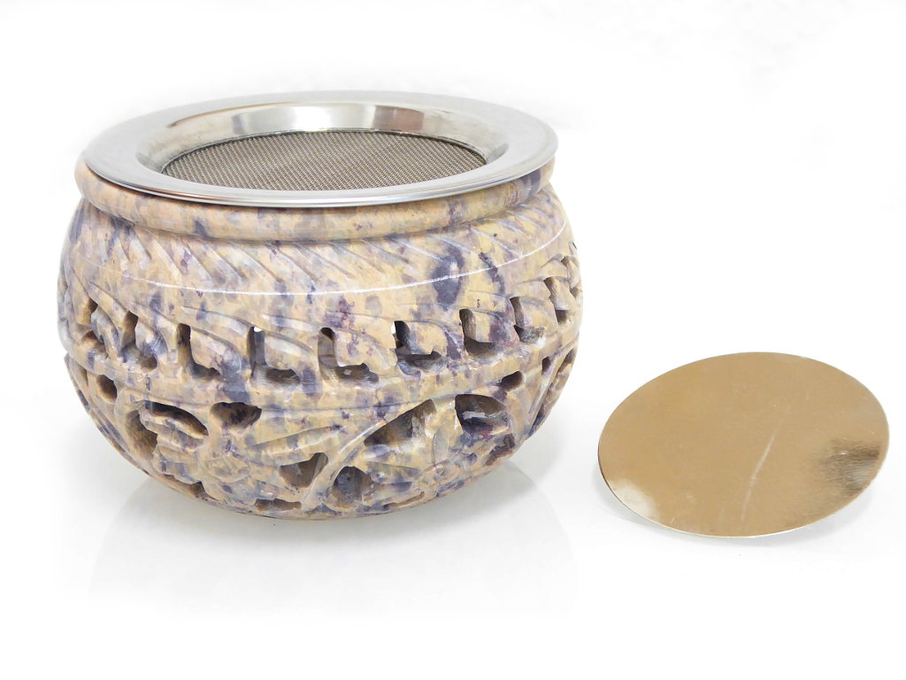 Mit einem Durchmesser von ca. 8 cm und einer Höhe von 6 cm erfahren Sie ein kräftigeres Räuchererlebnis. Das dazugehörige silberne Plättchen kann für ein sanfteres Räuchern verwendet werden.