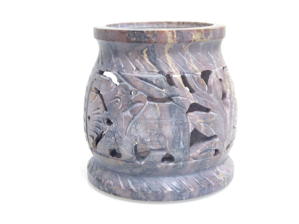 Bitte bedenken Sie, dass Speckstein ein Naturprodukt ist. Bis auf die Verzierungen sind farbliche und marmorierte Abweichungen vom Bild möglich.