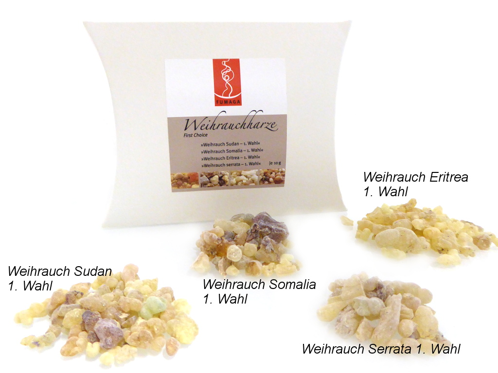 Weihrauchset 1. Wahl räuchern, Top Qualität, 4x10g Sudan, Somalia, Eritrea, Serrata mit u. ohne Kohle, hier online bequem bestellen