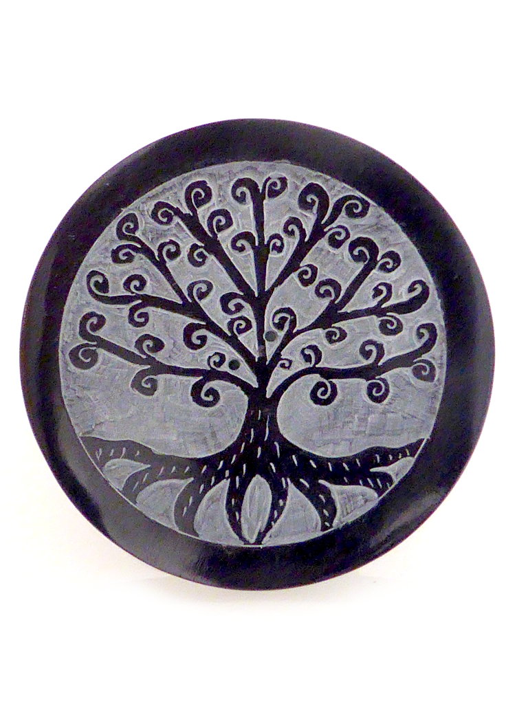 Wunderschöner, symbolträchtiger Halter für Ihre Räucherstäbchen. Kunstvoll ist das Motiv „Lebensbaum“ erhaben aus dem Stein heraus gearbeitet. Der Halter bietet in der Mitte Platz für zwei Räucherstäbchen. Sehr gut auch als dekorativer Untersetzer zu verwenden.