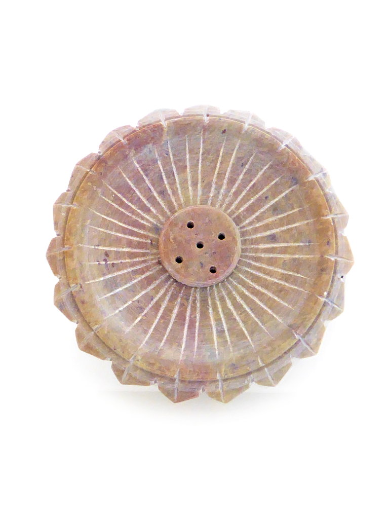 Aufwändig gestalteter Räucherstäbchenhalter „ Kalpana“ aus massivem Speckstein. Sehr schöne kunsthandwerkliche Arbeit. Hochwertige Qualität.