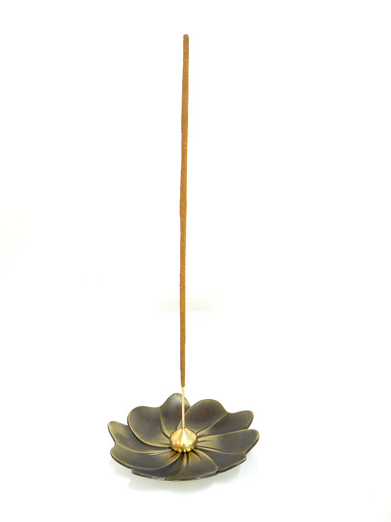 Die filigrane Ausführung der fünf aneinander gereihten Blütenblätter erhält durch das Vintage-Design einen ganz besonderen Charakter. Der als Räucherstäbchenhalter dienende „Tropfen“ liegt in der Mitte lose auf und kann bei Bedarf entfernt werden. So kann Maya z.B. auch als dekorative Schmuckablage oder als kleines Potpourrigefäß genutzt werden.