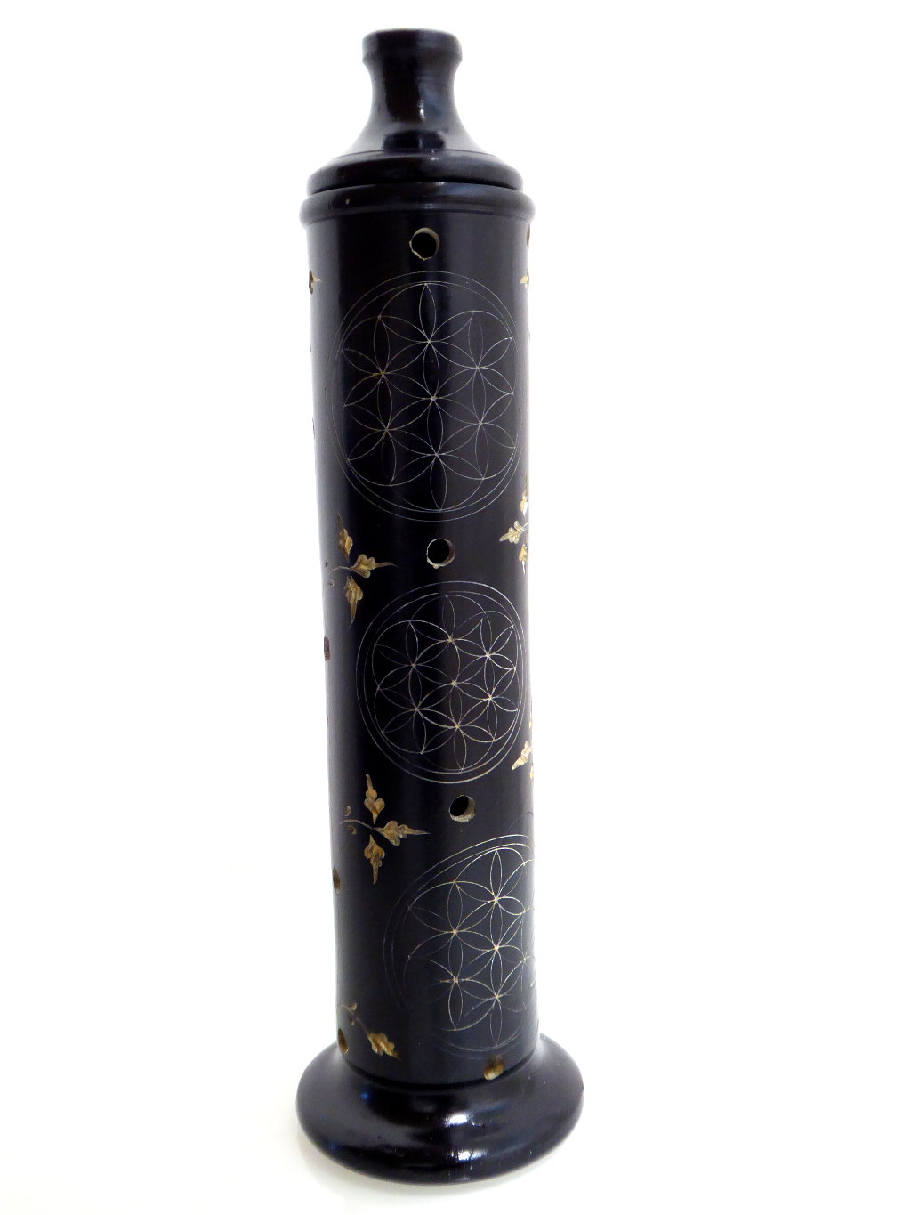 Ausdrucksstark ziert das Symbol „Blume des Lebens“ diesen Räucherturm für Räucherstäbchen aus Speckstein. Zart fließt zwischen der „Blume des Lebens“ ein dezentes Rankenornament, alle Dekore sind in den Stein sorgsam eingraviert.
