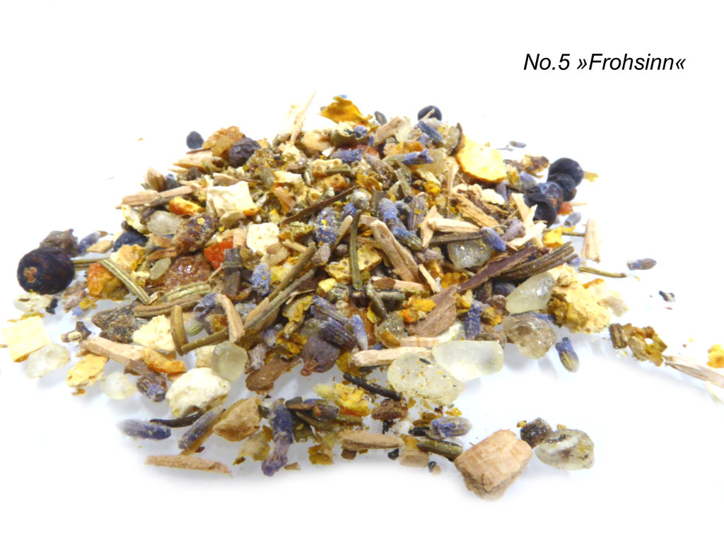 - Räucherwerk No.5 »Frohsinn« unterstützt Lebensfreude und Zuversicht.