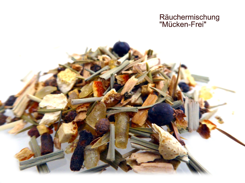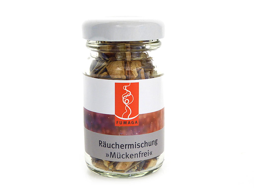 Die Räuchermischung „Mückenfrei“ ist sowohl im Freien als auch im Haus einsetzbar. Die naturbelassene Mischung enthält ausgesuchte Kräuter und Pflanzen. Durch das Verräuchern werden Duftstoffe freigesetzt, die unsere lästigen Begleiter vertreiben. Für uns Menschen entfaltet sich jedoch ein angenehmer Geruch. Da das Räuchern sehr ergiebig ist, sind kleine Mengen des Inhalts ausreichend.