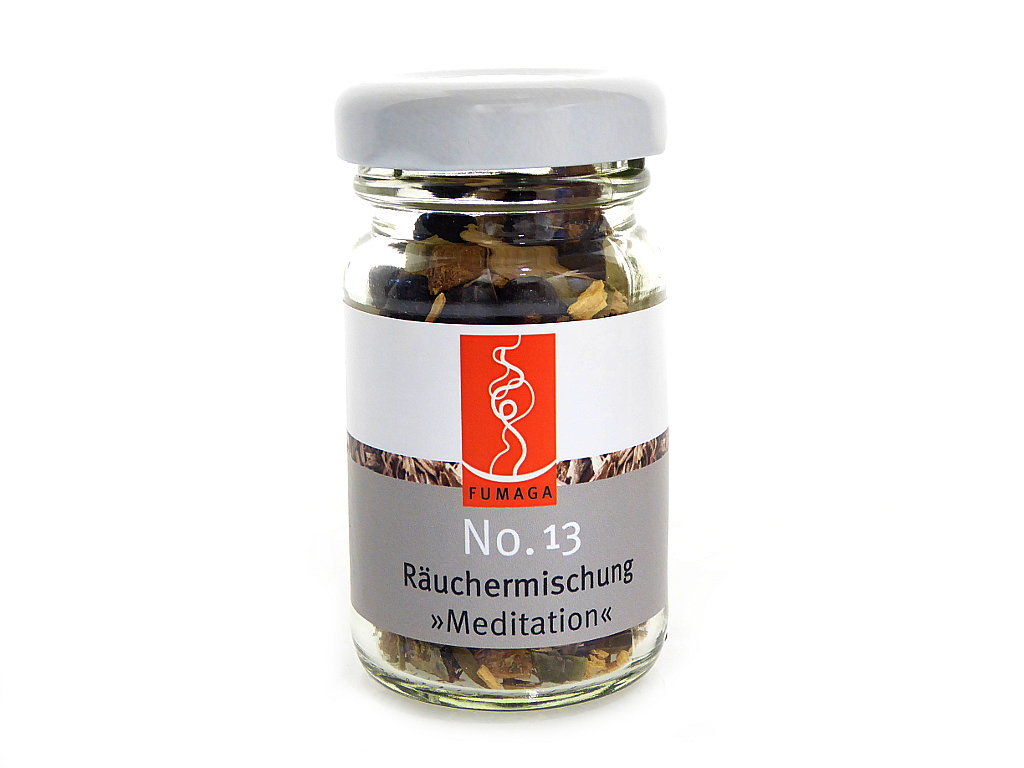 Während des Räucherns verströmt die Räuchermischung „No.13 Meditation“ einen entspannenden Duft – kräftig-balsamisch, mit einem feinen Übergang von warmen, süß-vanilligen Komponenten.