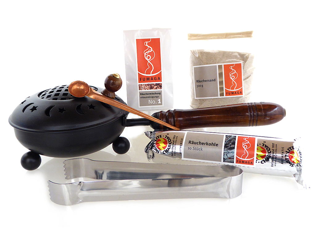 Mit dem Set »Hausreinigung« und der Räucherpfanne „Ali Baba“ können Sie sofort beginnen. Ein Mini – Booklet mit den wichtigsten Informationen liegt bei.